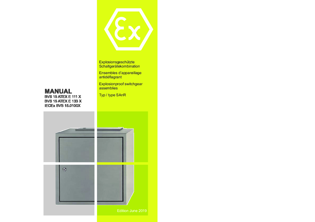 Manual BVS 15 ATEX E 111 X / BVS 15 ATEX E 133 X - Schaltgerätekombination SAnR