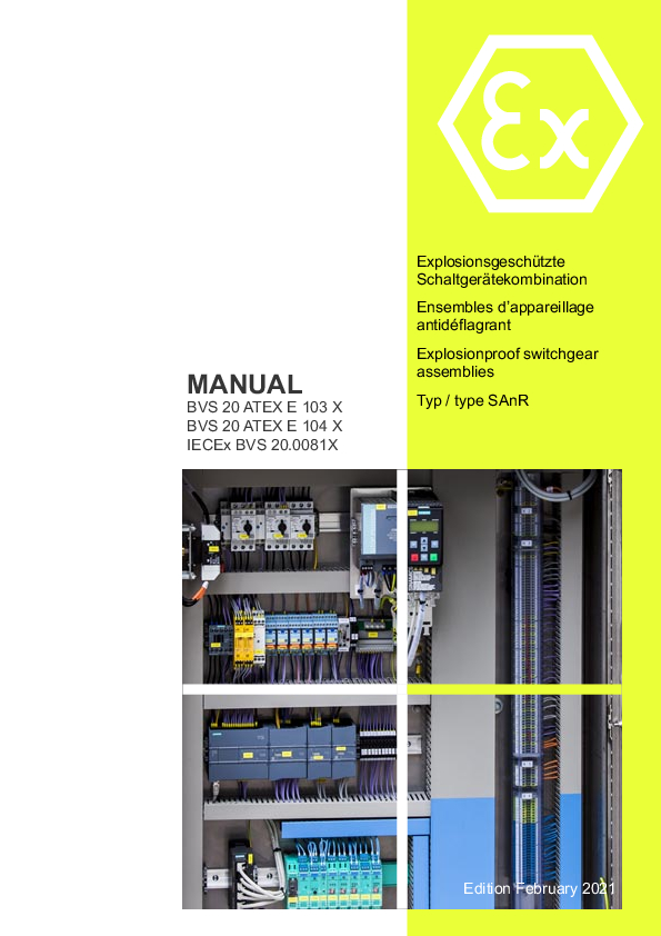 Manual BVS 15 ATEX E 111 / BVS 15 ATEX E 133 X - Schaltgerätekombination SAnR