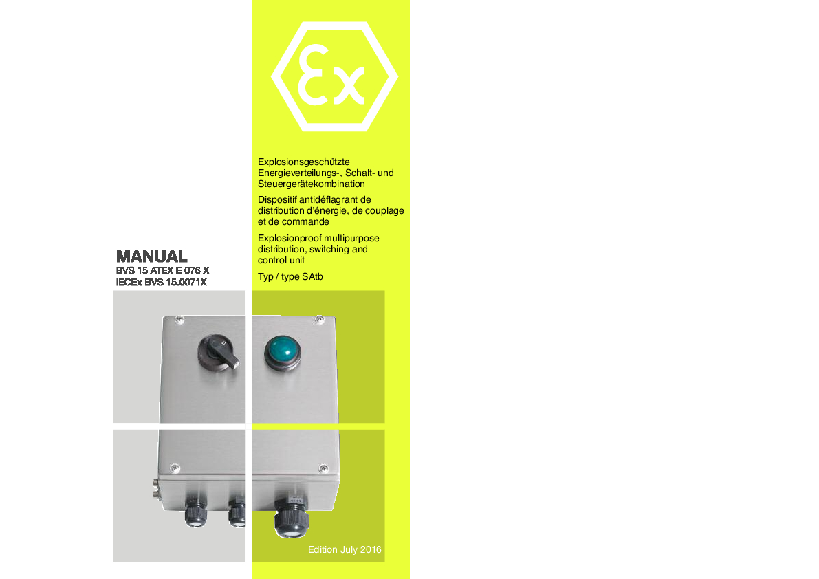 Manual BVS 07 ATEX E 052 - Schaltgerätekombination SAtD