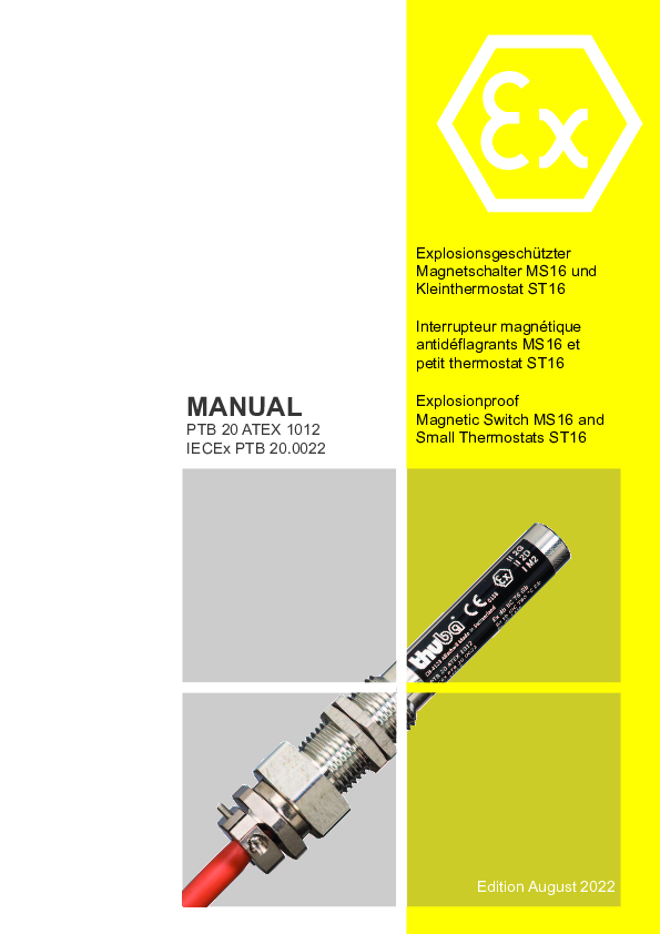 | Manual PTB 20 ATEX 1012 - Magnetschalter MS16 und Kleinthermostat ST16 | September 2025 | PDF 🢃 | 4.2 MB |