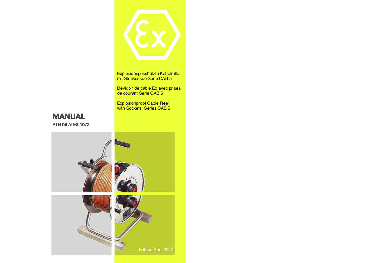 | Manual PTB 20 ATEX 1009 - Kabelrolle CR | September 2025 | PDF 🢃 | 5.2 MB |