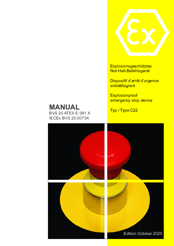 | Manual BVS 20 ATEX E 091 X - Befehlsmeldegeräte C22 | September 2025 | PDF 🢃 | 3.3 MB |