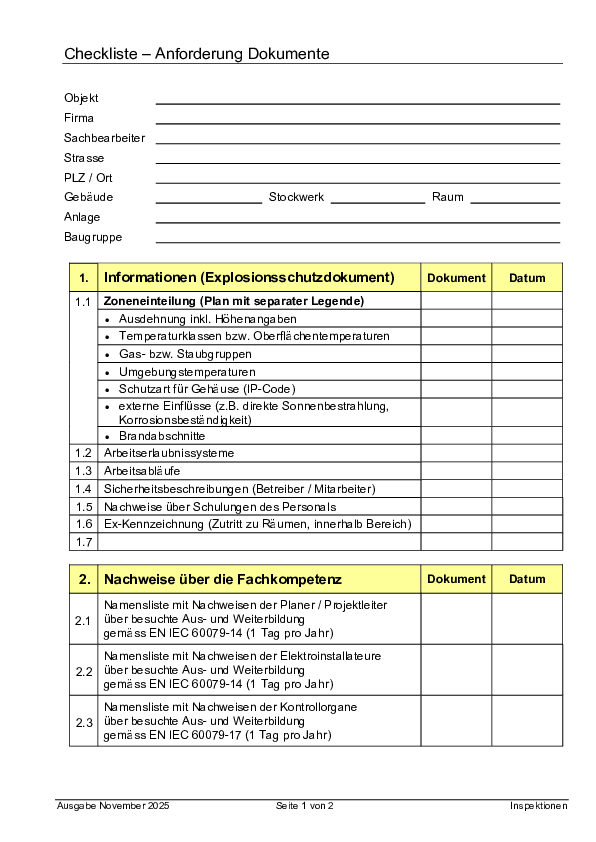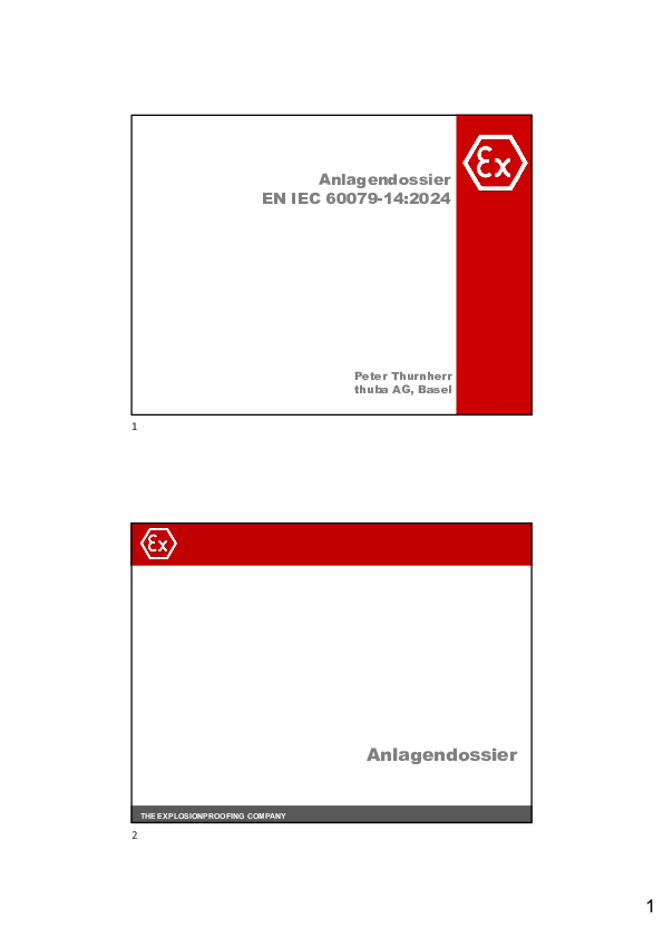 Inhalt des Anlagendossiers gemäss EN IEC 60079-14