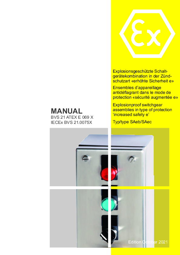 Manual BVS 21 ATEX E 069 X - Switchgear Assemblies SAeb/SAec