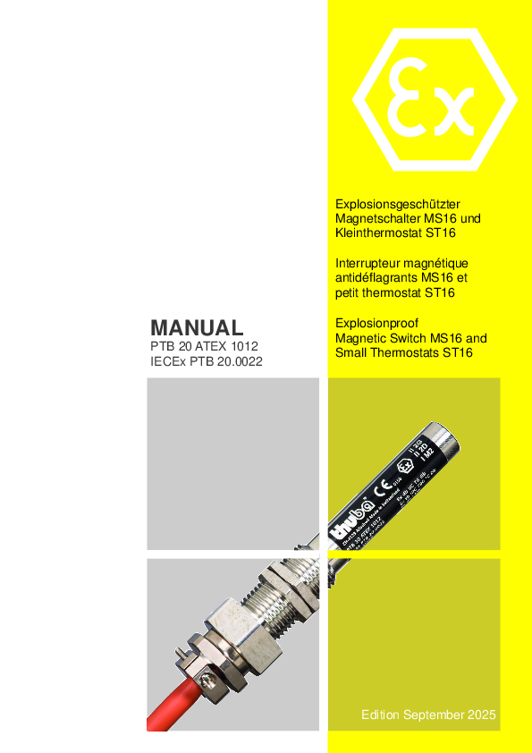 Manual PTB 20 ATEX 1012 - Magnetic Switch MS16 and Small Thermostats ST16