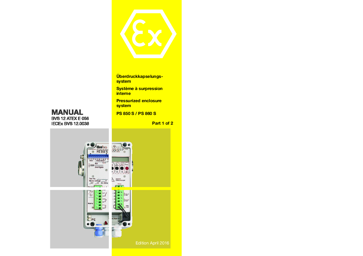 Manual BVS 12 ATEX E 056 - Système à surpression interne PS 850 S