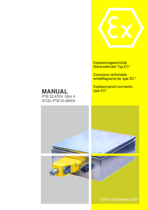 | Manual PTB 23 ATEX 1004 X - Connexion enfichable EC | mai 2023 | PDF 🢃 | 4,2 MO |