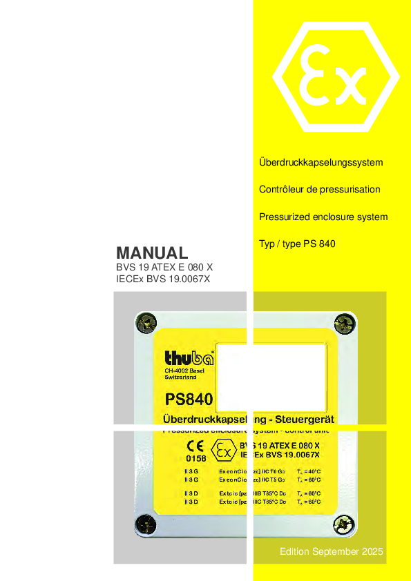 Manual BVS 19 ATEX E 080 X - Contrôleur de pressurisation PS 840