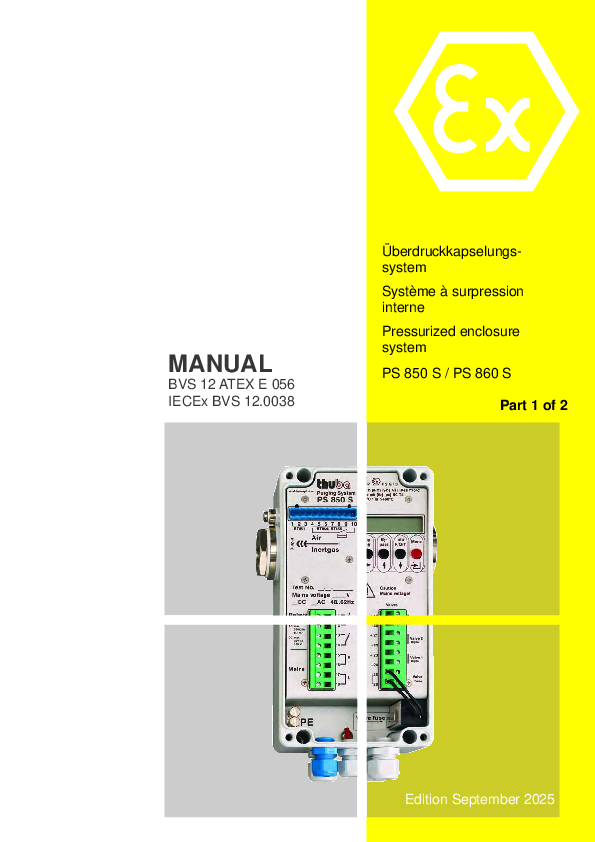 Manual BVS 12 ATEX E 056 - Système à surpression interne PS850/PS860