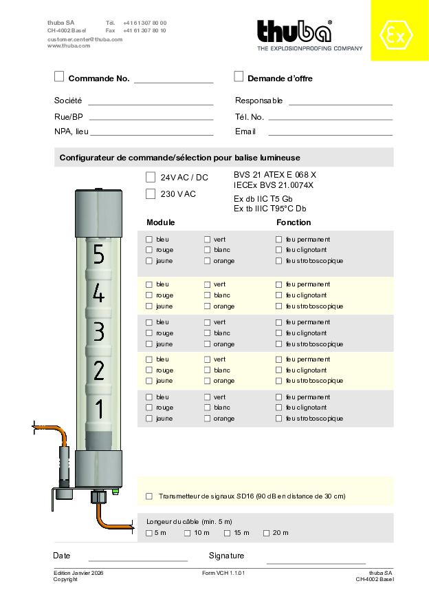 La balise lumineuse antidéflagrante (Ex db IIC T5 Gb, Ex tb IIIC T95°C Db) assure un meilleur contrôle de tous les processus importants et donc une plus grande disponibilité des installations dans les atmosphères explosibles. Les balises lumineuses sont un élément essentiel des installations. Grâce à elles, il est également possible de fournir des fonctionnalités d’avertissement qui permettent à l’utilisateur d’éviter une immobilisation de l’installation.